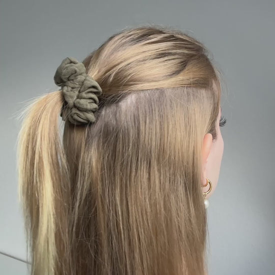 Unser Mini Scrunchie ist die ideale Wahl für dünnes, feines oder kürzeres Haar. Durch seine kompakte Größe bietet es sicheren Halt, ohne zu beschweren, und eignet sich perfekt für kleine Frisuren wie Half-Up-Styles, feine Zöpfe oder dezente Dutts.