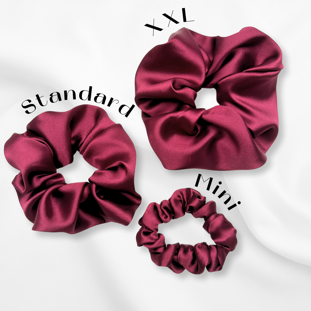 Unsere Scrunchies gibt es in drei Größen: Mini für feines Haar & kleine Styles, Standard als Allrounder für den Alltag und XXL für dickes Haar & voluminöse Dutts.